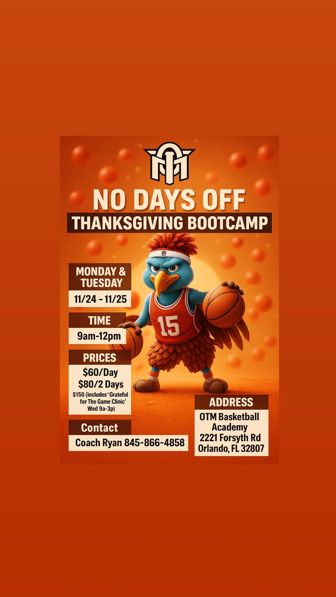 GRATEFUL FOR THE GAME $100.00 Pre-Season Prep $1,000.00 No Days Off THANKSGIVING from $60.00 OTM Monthly Training Memberships from $140.00 every month